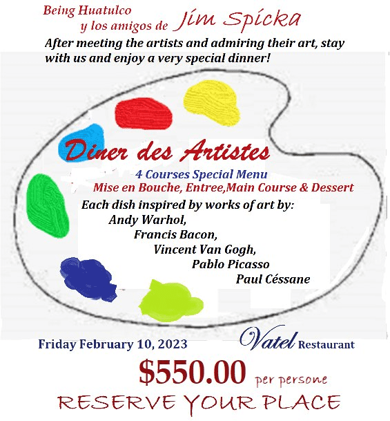 | Art Dinner February 10 | Vatel Restaurant Huatulco | 550 | Enjoy a set menu and art exhibit |