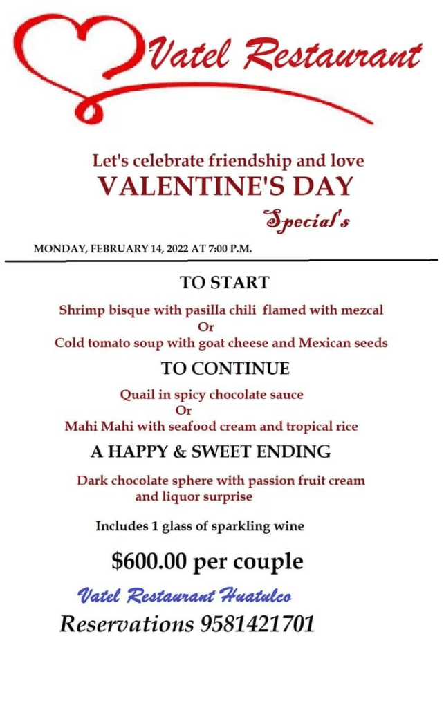 Looking for a special place to spend Valentine’s in Huatulco? Here are some of Huatulco’s best Valentine’s Day dinners and events!